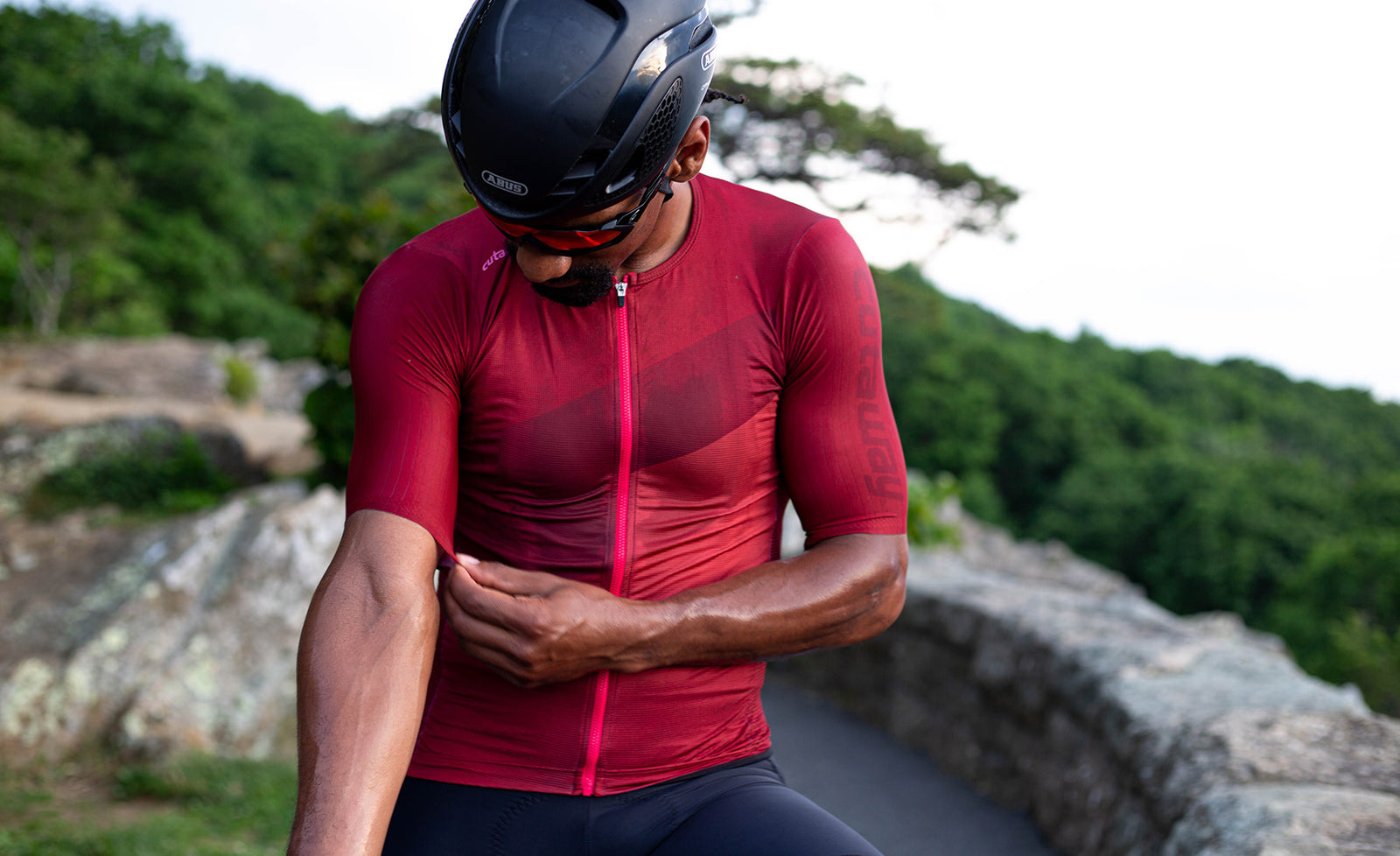 Constructed from an extremely lightweight and breathable 100% recycled Italian made main fabric, paired with mesh side panels for added breathability, laser cut aerodynamic sleeves and our signature collarless design.