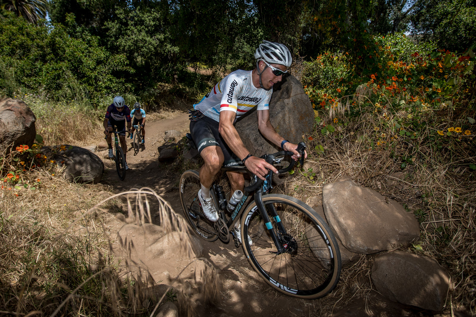 The weekend starts with a huge expo, plenty of “Hey how are you’s," and discussion of the course. Winding through San Diego’s North County on a mix of pavement, single track, sandy gravel, and neighborhood paths, the course has something for everyone to enjoy. Its overall arc includes a stunningly beautiful climb up Black Canyon followed by a generally long downhill cruise back to Sandy Bandy, dirt sectors, and a brutal climb up Double Peak, the crux of the event where dreams are often crushed, only to be revived by a cold beer at the finish.