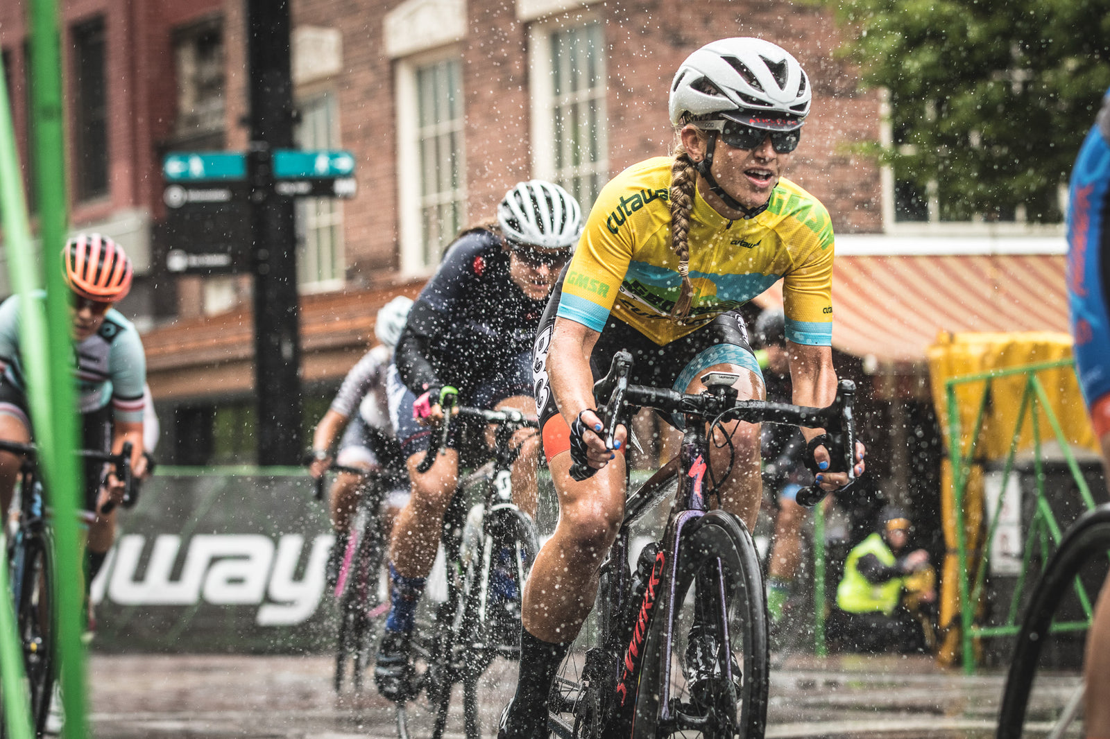 After fantastic weather all weekend, the skies decided to open up and release a steady rain all day Monday in downtown Burlington. On an already tight and technical criterium, the wet weather brought an extra element of stress to a day that often sees a shake up on both the overall lead and the sprinter's classification.